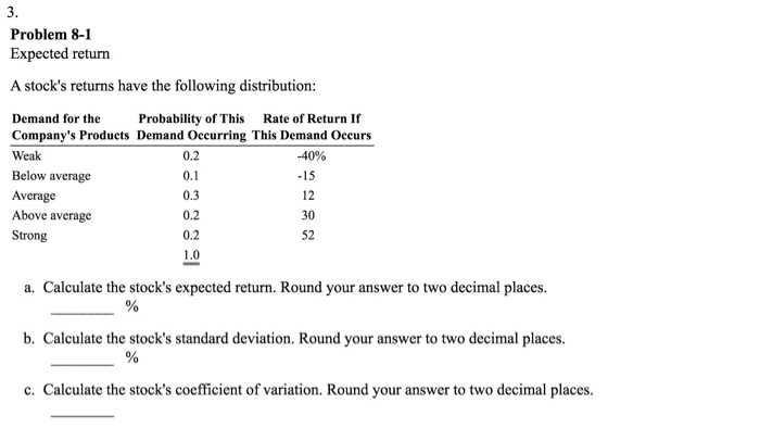 See full list on educba.com How do you calculate standard deviation of return? See full list on educba.com See full list on educba.com Jul 18, 2016 · how to calculate expected total return for any stock.